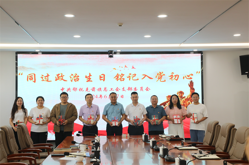 在祝福的掌声中,鄂托克前旗总工会党支部为党员同志们赠送了精心准备的“政治生日”礼物,为党员们留下一份深刻的“政治生日”印记。