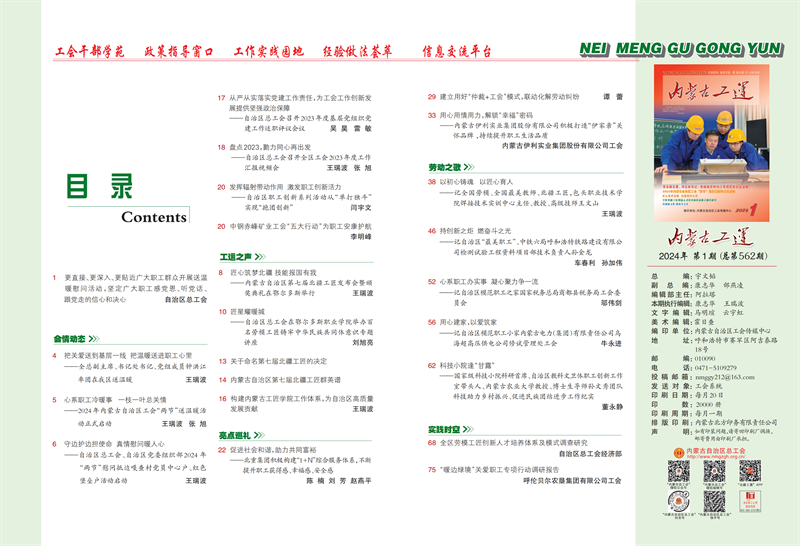 《内蒙古工运》2024年第1期封面、目录展示