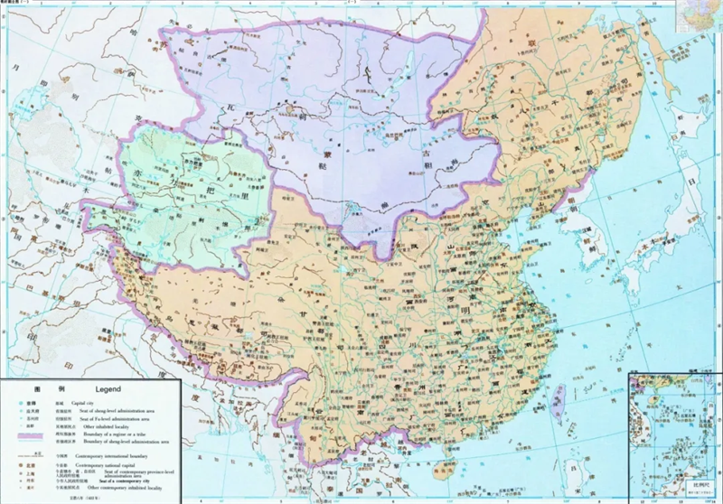 ▲明朝疆域图(图片来源:谭其骧中国历史地图集》)