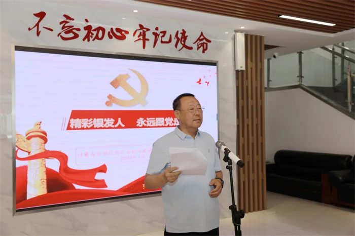 为庆祝中国共产党成立103周年,全面回顾党的光辉历程,弘扬党的优良传统,进一步引导离退休干部唱响共产党好、社会主义好、改革开放好、伟大祖国好、各族人民好的时代主旋律,充分发挥离退休干部党组织的战斗堡垒作用和老党员的先锋模范作用,7月2日,自治区总工会组织退休老干部开展“精彩银发人 永远跟党走”庆“七一”活动。自治区总工会党组成员、副主席傲木格为退休老同志老党员送去祝福。