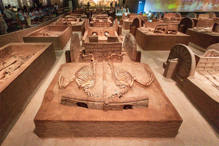 ▲殷墟博物馆内展示的商代车马坑遗址。(图片来源:视觉中国)