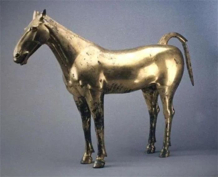 ▲汉武帝茂陵出土的西汉鎏金铜马 。(图片来源:茂陵博物馆)
