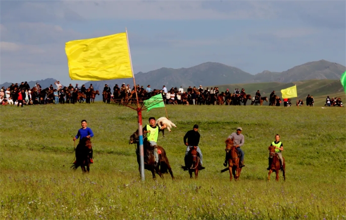 在哈萨克族的主要传统节日,包括诺吾鲁孜节、肉孜节和古尔邦节等,往往会举办热闹非凡的庆祝活动,而赛马、叼羊、姑娘追、马上角力等马上竞技活动则是最为引人注目的。