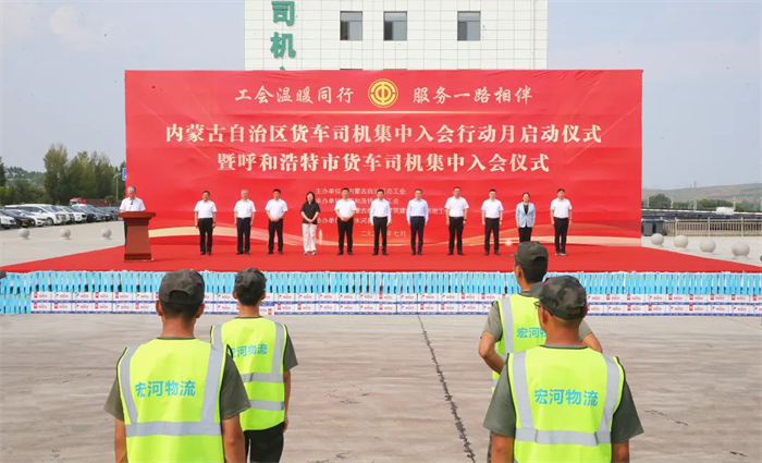 7月10日,内蒙古自治区总工会在呼和浩特市清水河宏河物流园区举行内蒙古自治区货车司机集中入会行动月启动仪式暨呼和浩特市货车司机集中入会仪式。中华全国总工会副主席、书记处书记金善文出席仪式,中国海员建设工会主席、分党组书记李庆忠讲话,自治区总工会党组书记、副主席张慧宇讲话,自治区总工会党组成员、提名副主席候选人邬兴宇出席仪式,自治区总工会二级巡视员王俊主持仪式,呼和浩特市人大常委会副主任、总工会主席云玉美致辞。