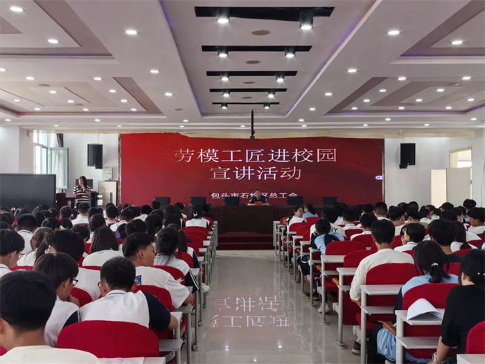 7月8日,包头市石拐区总工会走进包头市第十五中学开展“劳模工匠进校园”宣讲活动,邀请包头市级劳动模范张青祥为师生讲述他的奋斗故事。