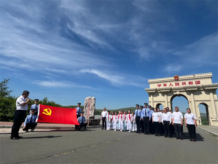 ▲阿尔山出入境边防检查站、阿尔山市第一小学等边境党建互联共建单位来到庄严的国门前,共同开展“铸牢北疆安全稳定屏障 画好民族团结同心圆”主题党日。图源:中国民族报