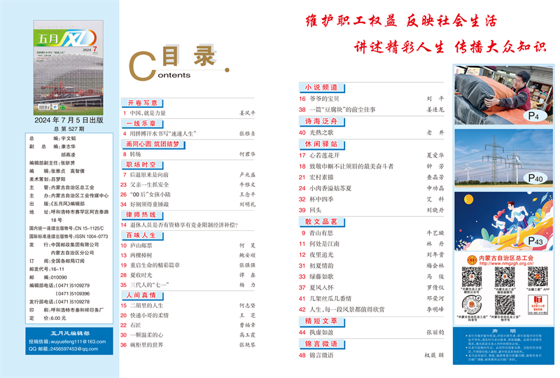 《五月风》2024年第7期封面及目录展示