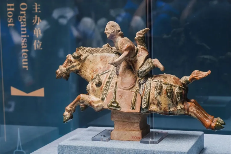 ▲展览里的唐代三彩奔马马术俑,马上胡人形态神采飞扬,生动展现出唐代马术的高超技艺。(图片来源:中国体育博物馆官网)