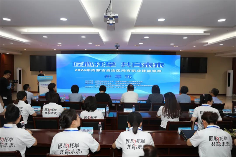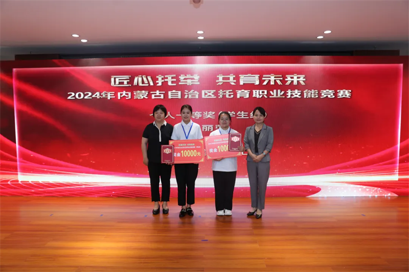 为深入学习贯彻习近平新时代中国特色社会主义思想,学习宣传贯彻党的二十届三中全会精神,学习贯彻习近平总书记关于工人阶级和工会工作的重要论述及对内蒙古的重要指示精神,全面贯彻铸牢中华民族共同体意识工作主线,围绕办好自治区两件大事、推进“六个工程”奋发作为,8月1日至2日,由自治区总工会、自治区卫生健康委主办,呼和浩特市总工会、呼和浩特市卫生健康委、呼和浩特市妇幼保健院、呼和浩特市托育综合服务中心承办,内蒙古商贸职业学院、内蒙古幼儿教育研究会协办的首届“全区托育职业技能竞赛”在内蒙古商贸职业学院举行。自治区总工会党组成员、副主席吴燕平出席闭幕式并为获奖选手颁奖,自治区总工会党组成员、副主席候选人邬兴宇出席开幕式并宣布比赛开幕。