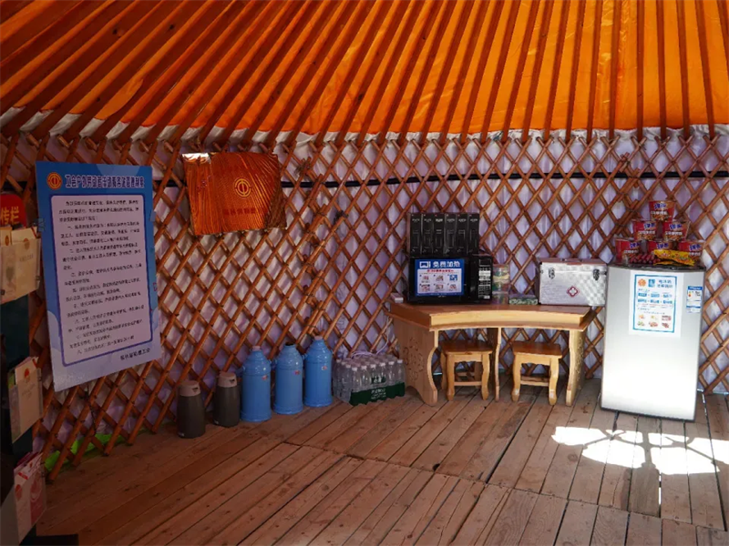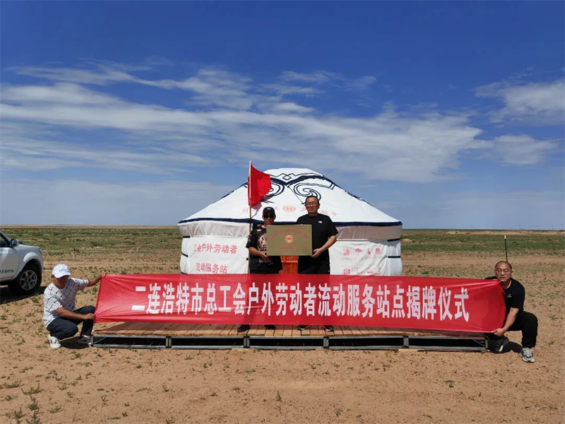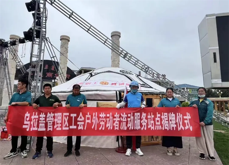 这些流动工会驿站,设计巧妙,因地制宜。在外观设计上统一悬挂庄严的国旗,统一印有工会会徽,统一以蒙古包为造型;内部设施一应俱全:从清凉舒适的休息区,到配备齐全的医疗急救站,从便捷的饮水和食物补给区,到信息丰富的图书报刊阅览角,每一处细节都透露着对劳动者的细心呵护。西瓜的清甜、矿泉水的甘冽,一并送达,为辛勤工作的户外劳动者带去了丝丝凉意与深深关怀,传递着工会大家庭对他们的崇高敬意与深切慰问。