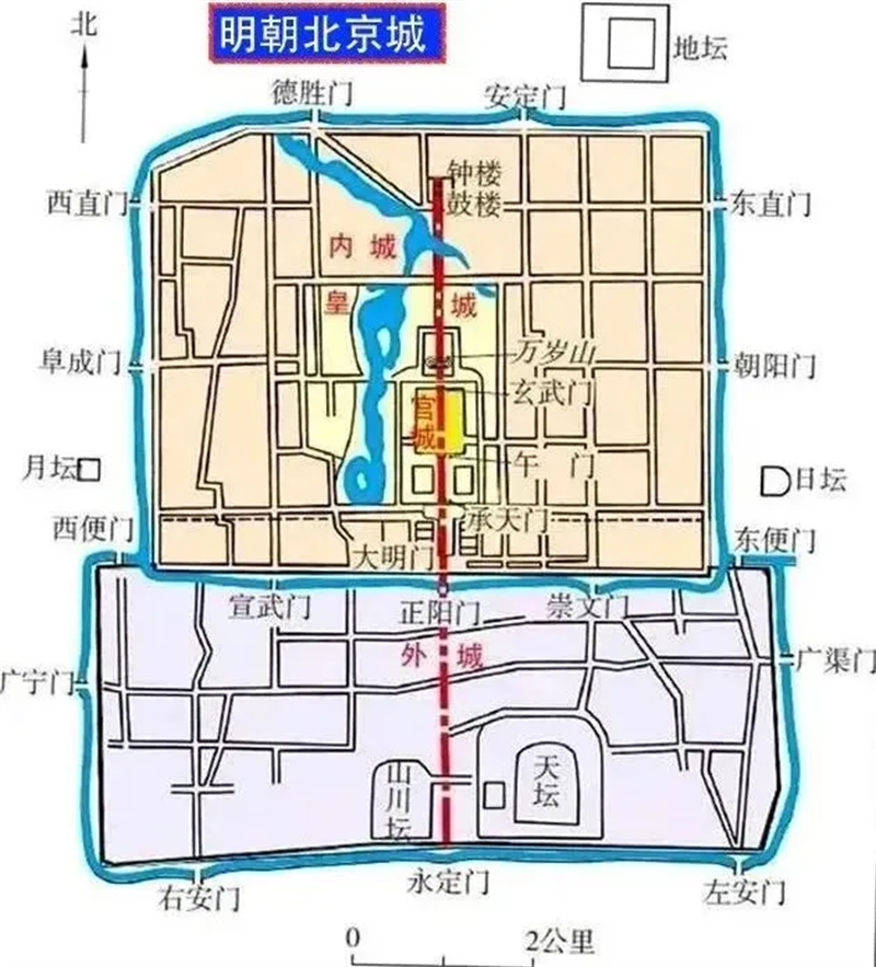 此时的北京城,呈长长的“凸”字形,中轴线因此被拉长到7.8公里。
