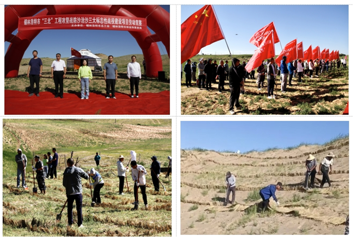 此次竞赛以团体赛形式进行,以人工铺设草方格的方式设立沙障,他们俯身开沟铺草,用力挥锹填沙,动作高效规范,配合一气呵成,将一个个草方格接连成片,像沙地中编织成的“黄金甲”,牢牢束缚住连绵的沙丘。经过激烈的角逐,贝力克牧场代表队荣获团体一等奖,大唐锡电代表队、希办代表队荣获团体二等奖,社会组织代表队、宏源集团代表队、额办代表队荣获团体三等奖。