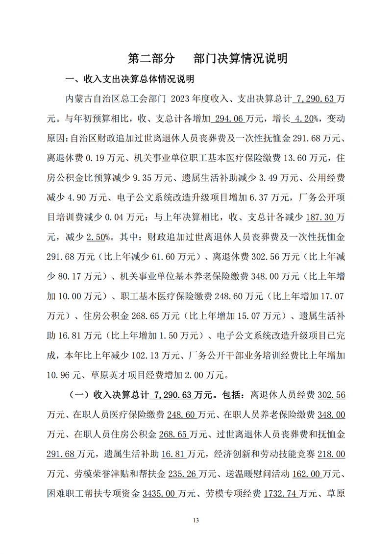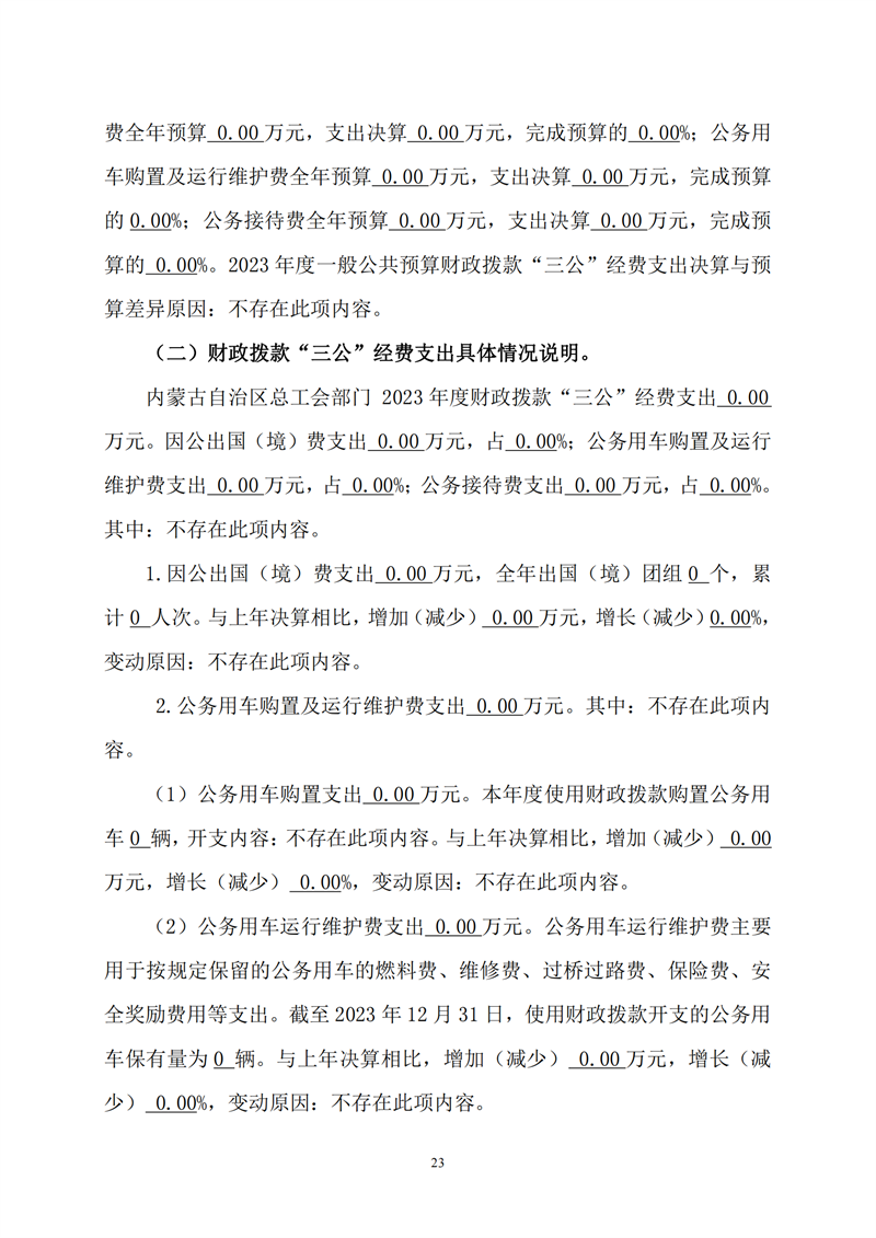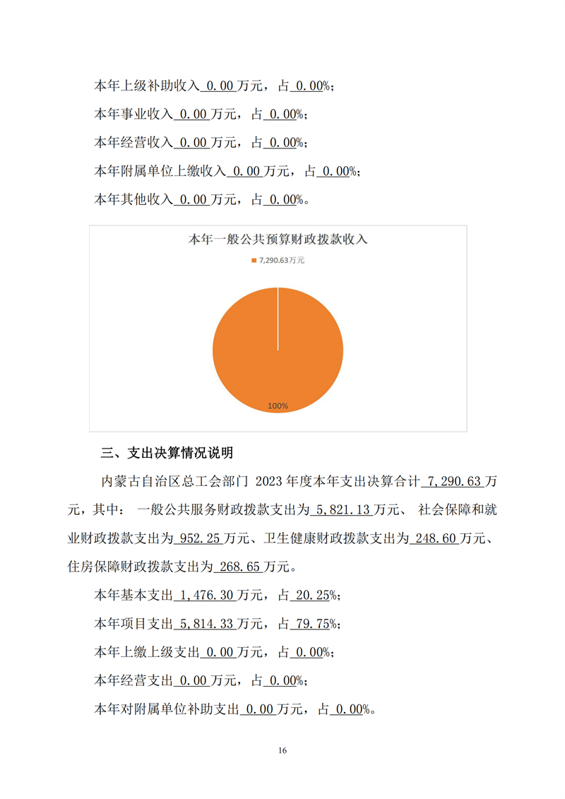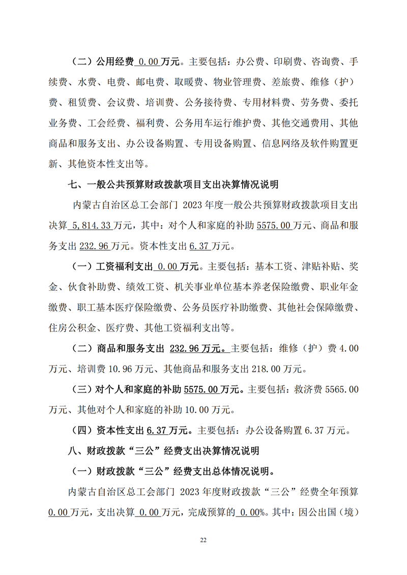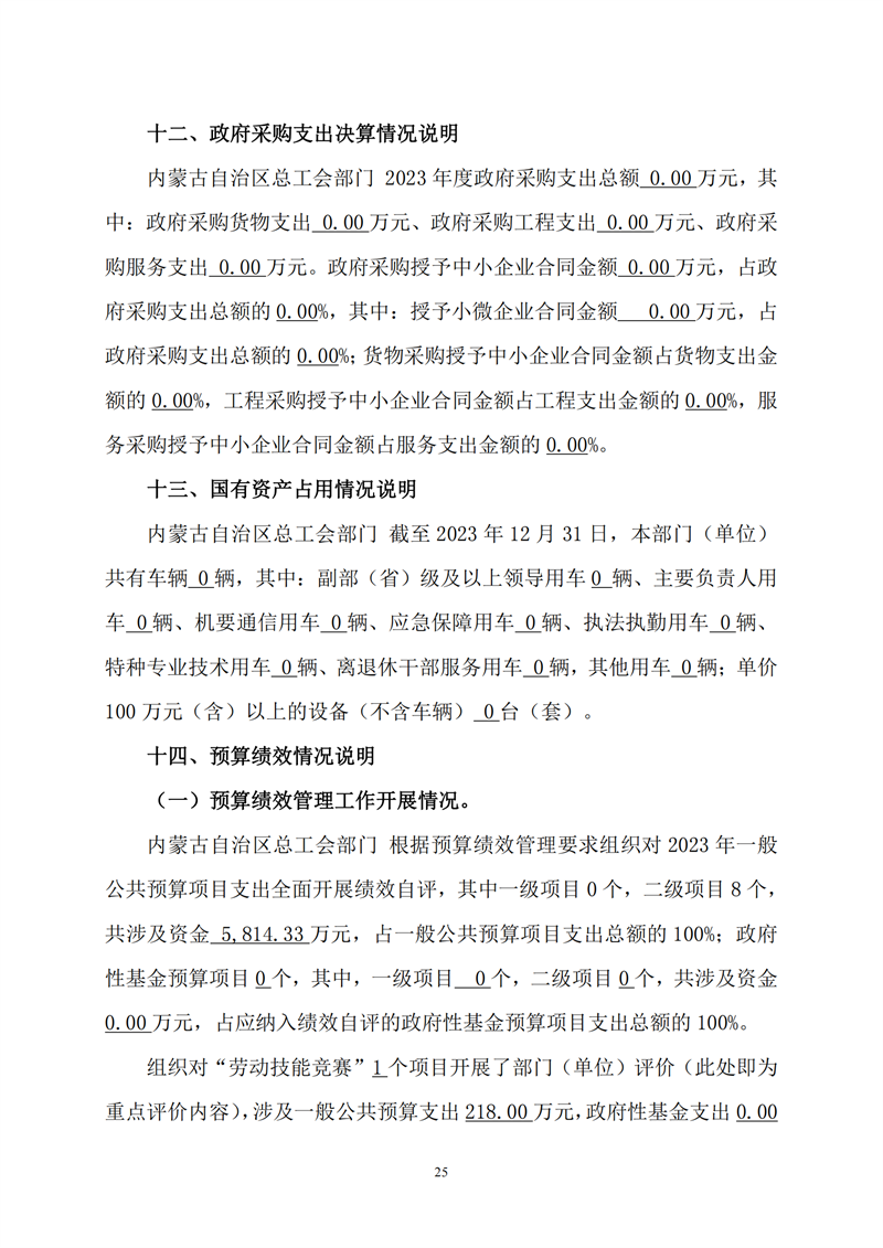 2023年度内蒙古自治区总工会部门决算公开