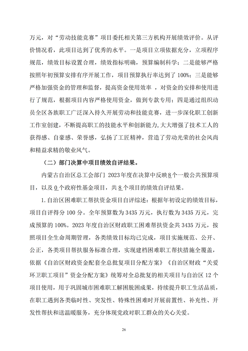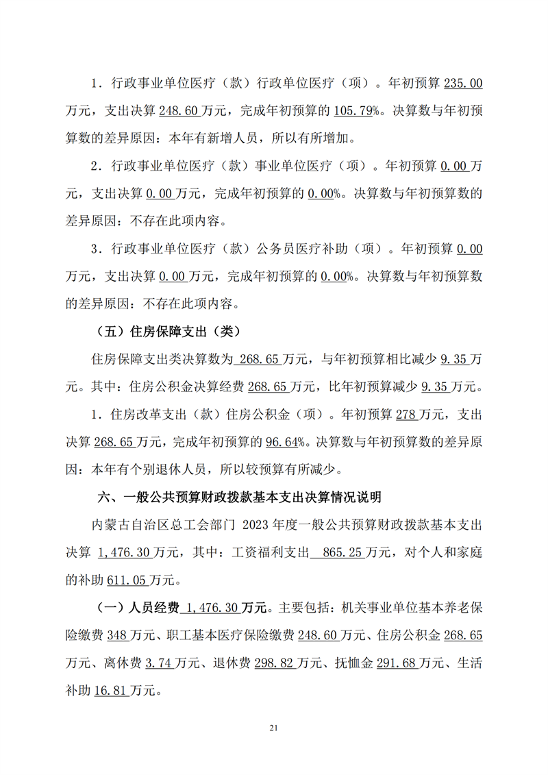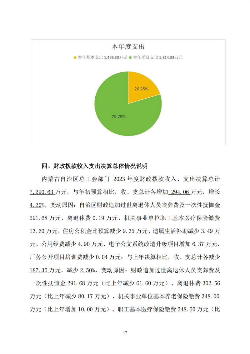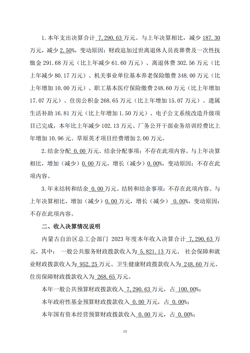 2023年度内蒙古自治区总工会部门决算公开