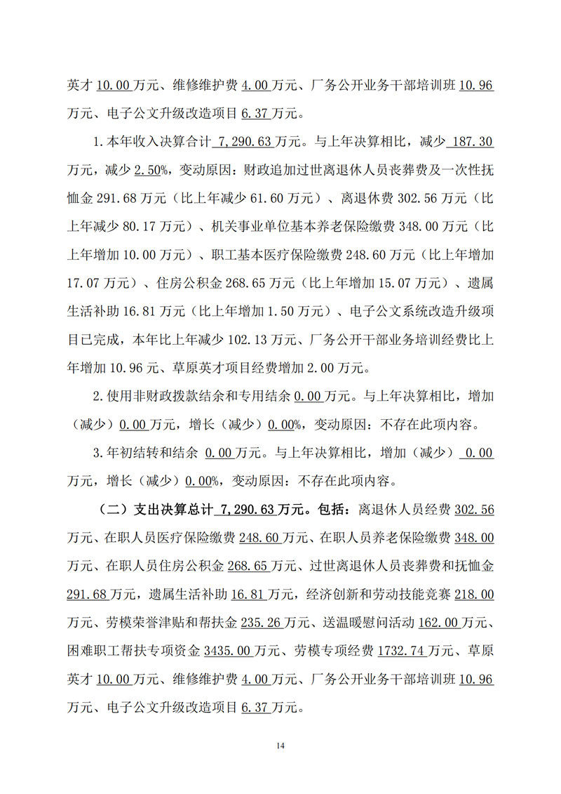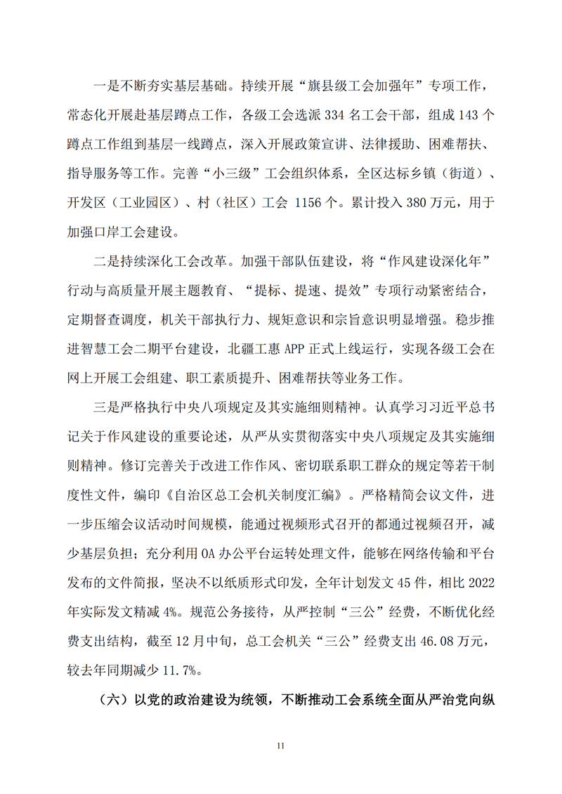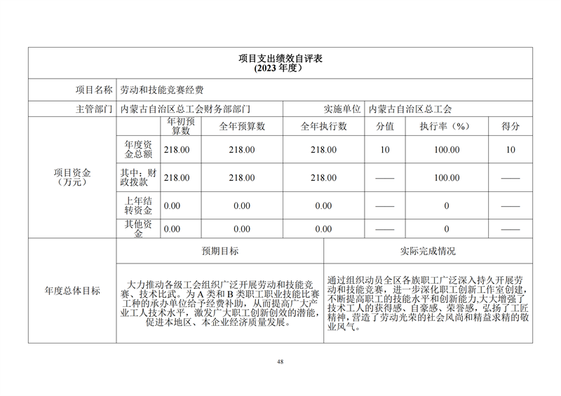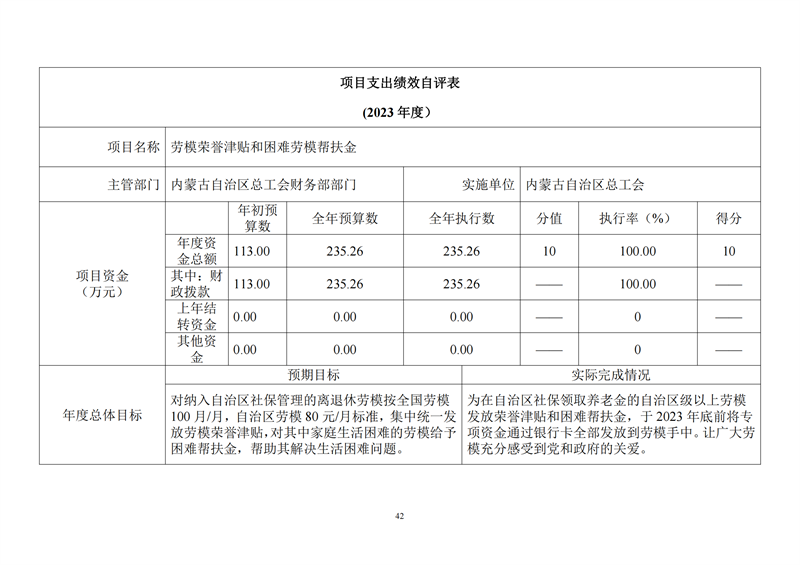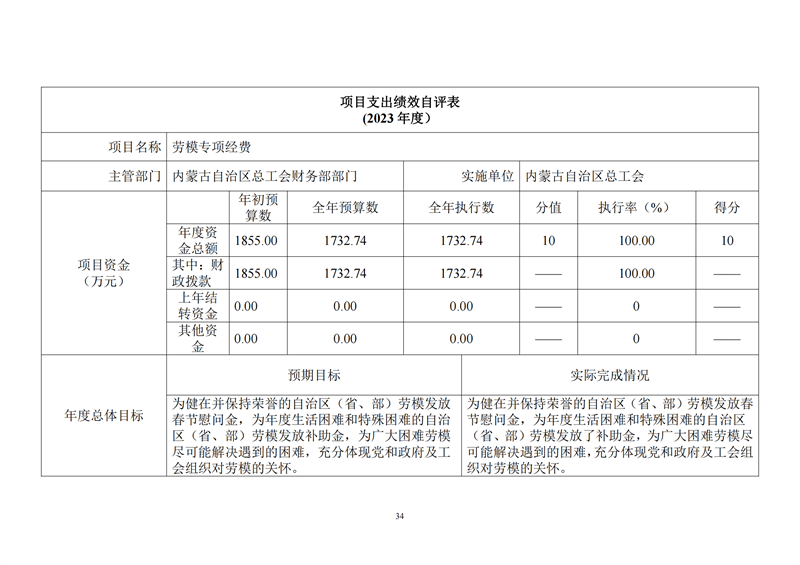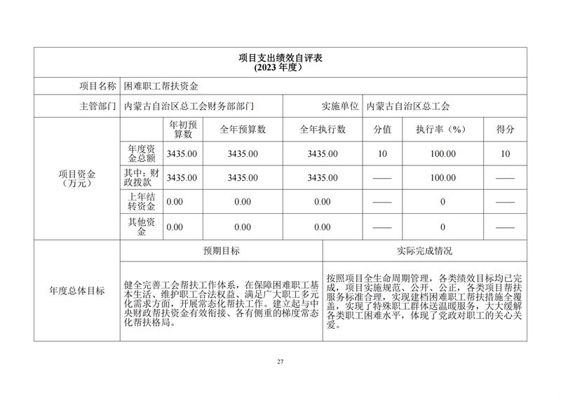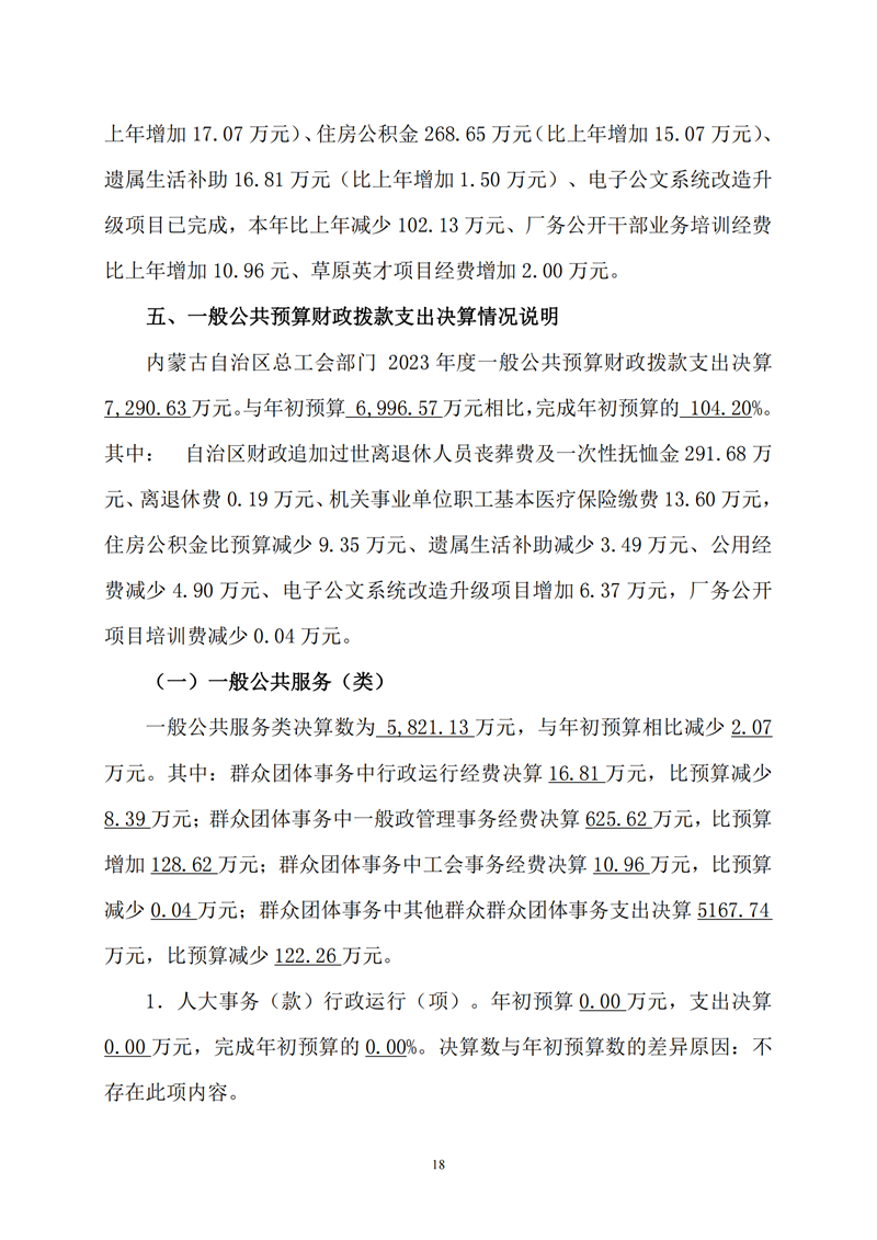 2023年度内蒙古自治区总工会部门决算公开
