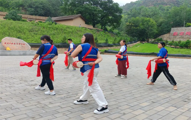还安排快递员体验了“贵妃同款”温泉,观看了《黄土高原》纪录片,欣赏了大型红色历史舞台剧《延安保育院》,学习地方特色的安塞腰鼓,进行了非遗体验。