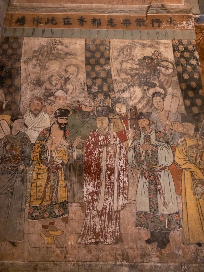 ▲位于山西洪洞县广胜寺内的“大行散乐忠都秀在此作场”元代戏剧壁画,画中是一个散乐班正在舞台演出时的场面,伴奏有鼓、笛、拍板三种乐器。(图片来源:视觉中国)