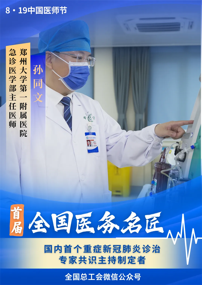 国内首个重症新冠肺炎诊治专家共识主持制定者——郑州大学第一附属医院急诊医学部主任医师孙同文