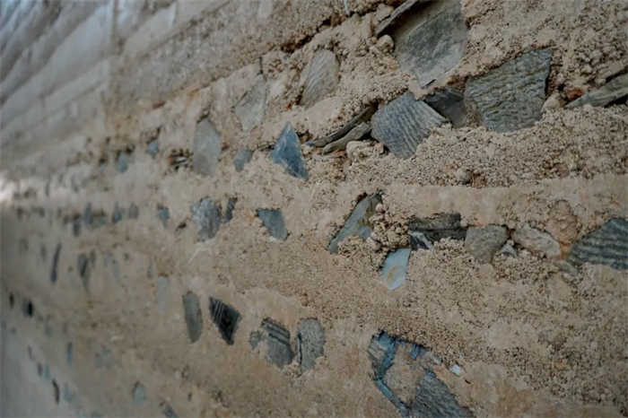 ▲博物馆大厅内一面嵌有文物残片的墙体