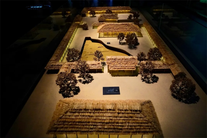▲二里头遗址二号宫殿建筑模型,堪称中国宫殿建筑的肇始。