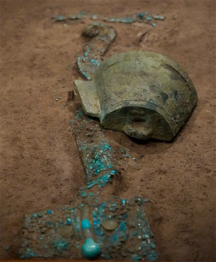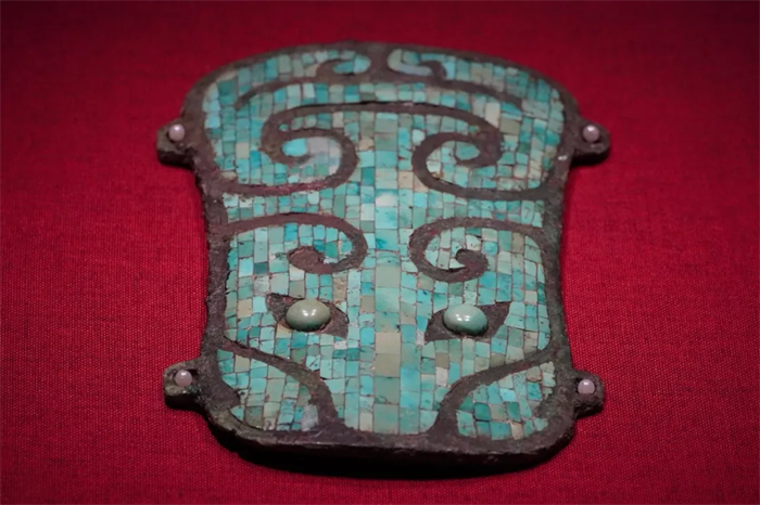▲二里头遗址出土的镶嵌绿松石兽面纹铜牌饰