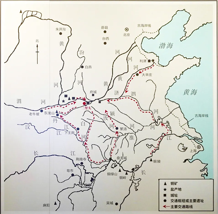 二里头遗址地处中原,是天下交通的中枢,向东由黄河、古济水、淮河可达黄河下游,向西可达关中甚至更西的地区,向北可达燕山南北乃至鄂尔多斯和内蒙古中南部,向南可经颍河和汝河进入淮河水系,进而到达长江下游。得天独厚的交通条件,使二里头出土文物也呈现“海纳百川”的多元特色。