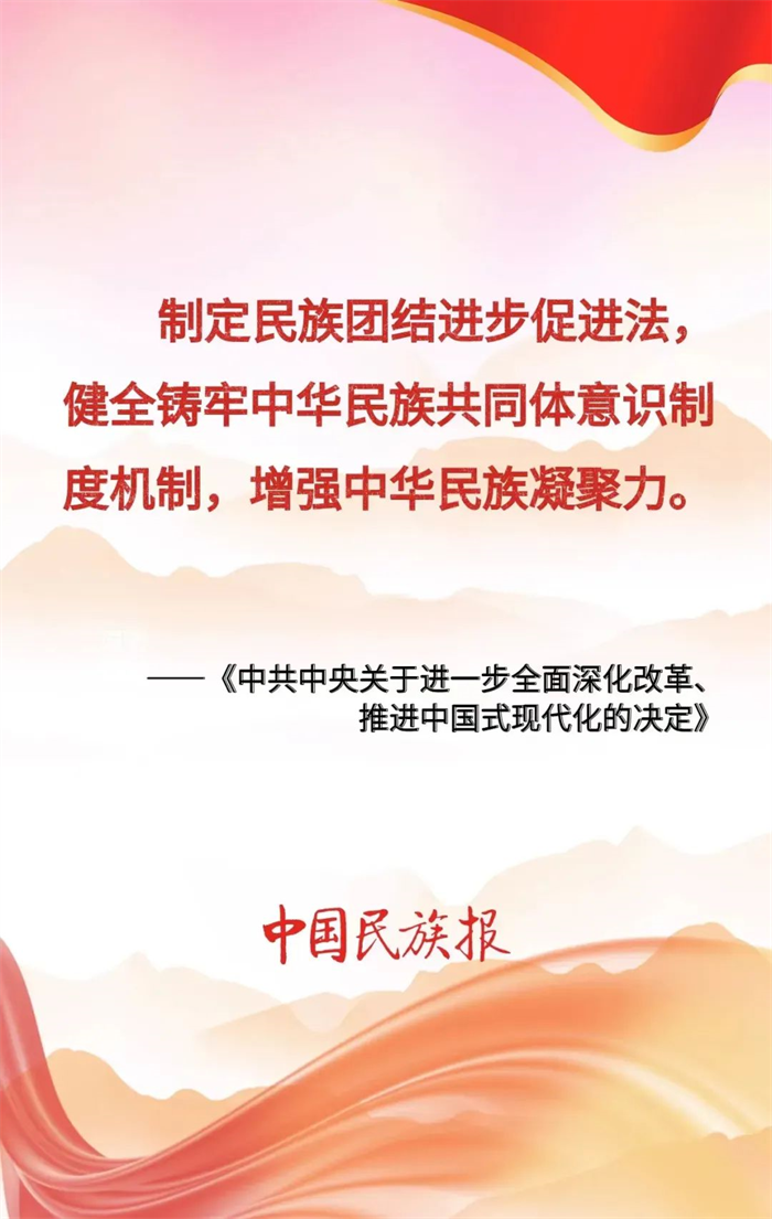 我国是一个统一的多民族国家,民族团结是各族人民的生命线。以习近平同志为核心的党中央把铸牢中华民族共同体意识作为新时代党的民族工作的主线、作为民族地区各项工作的主线,为推进中国式现代化凝聚起民族团结的磅礴力量。党的二十届三中全会《决定》提出:“健全铸牢中华民族共同体意识制度机制,增强中华民族凝聚力。”我们要深刻理解、准确把握铸牢中华民族共同体意识的丰富内涵和实践要求,推动各民族坚定对伟大祖国、中华民族、中华文化、中国共产党、中国特色社会主义的高度认同,以中华民族大团结促进中国式现代化。
