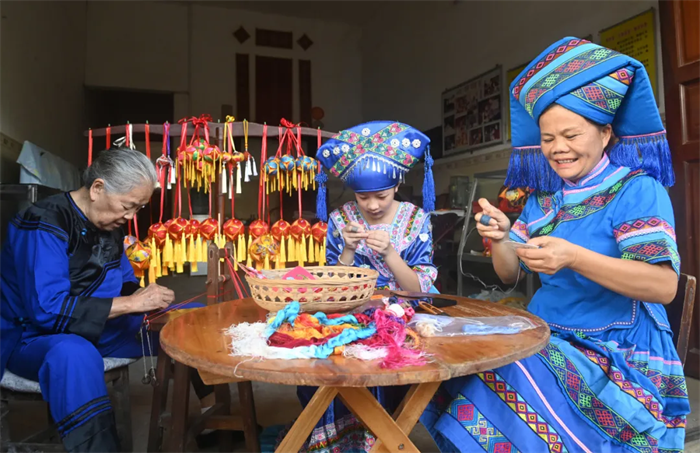 ▲8月27日,在广西靖西市新靖镇旧州街,当地居民在制作绣球。近年来,广西靖西市生产的绣球作为馈赠宾朋的精美礼品和旅游纪念品,销往全国各地,并通过电商平台出口到东南亚等地,成为助推当地旅游文化发展和群众增收致富的产业。新华社记者 陆波岸 摄