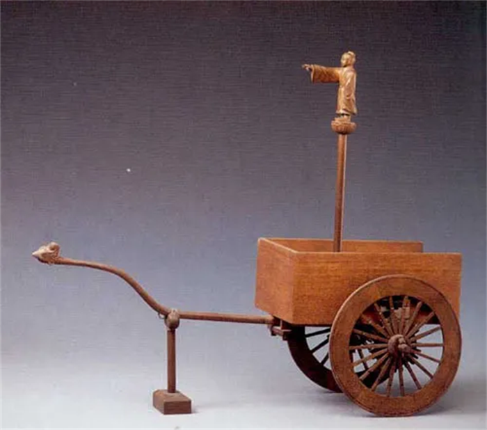 指南车是用于指示方向的车,只要在车开始运动时将车上木人手指向南方,便能“车虽回运而手常指南”。指南车虽然与指南针功能相同,但是原理迥然不同。指南车通过运用车轮、滑轮、各种齿轮和绳索等,利用机械原理指示方向,而指南针则依据地磁场指示方向。