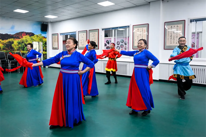 ▲居民在内蒙古赤峰市松山区临潢家园社区文体活动大厅跳舞(2024年6月19日摄)。新华社记者 李志鹏 摄