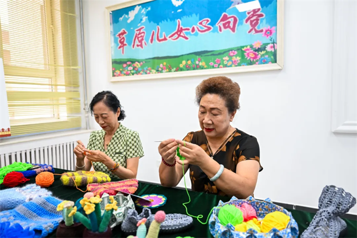 ▲近年来,赤峰市松山区兴安街道临潢家园社区通过开展编织技艺传承、书法课堂等特色活动,加强社区各族群众交往交流交融,进一步促进社区各族群众和谐相处、团结互助、共同发展。 新华社记者 李志鹏 摄