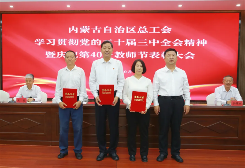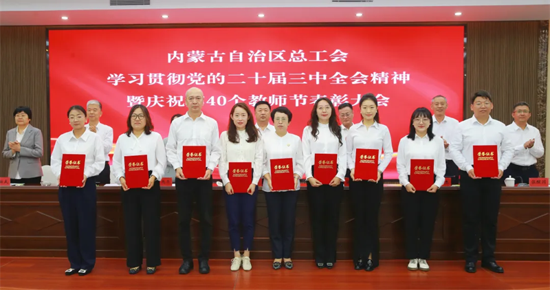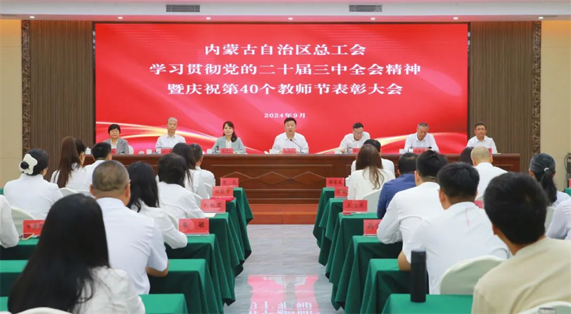 9月9日,自治区总工会在工会事业发展中心召开学习贯彻党的二十届三中全会精神暨庆祝第40个教师节表彰大会。自治区总工会党组书记、副主席张慧宇讲话,自治区总工会党组成员、副主席包铁强宣读表彰决定,自治区总工会党组成员、副主席吴燕平主持会议。