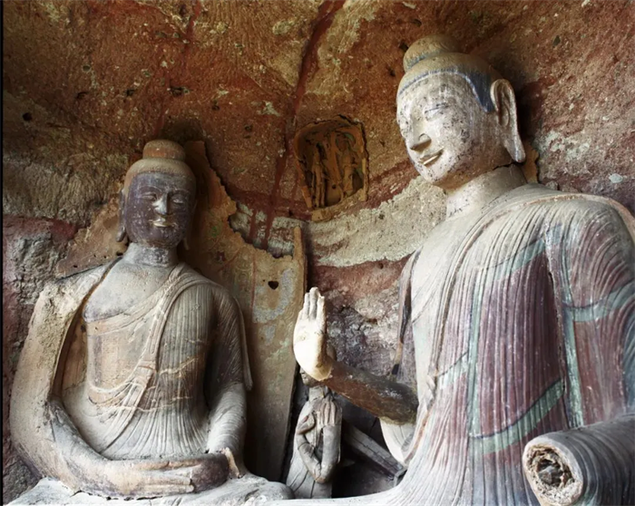 麦积山石窟,因位居丝绸之路要冲,既受到来自西域佛教的影响,同时被中原及南方地区文化所滋养,形成了独具特色的雕塑、壁画和建筑艺术风格。