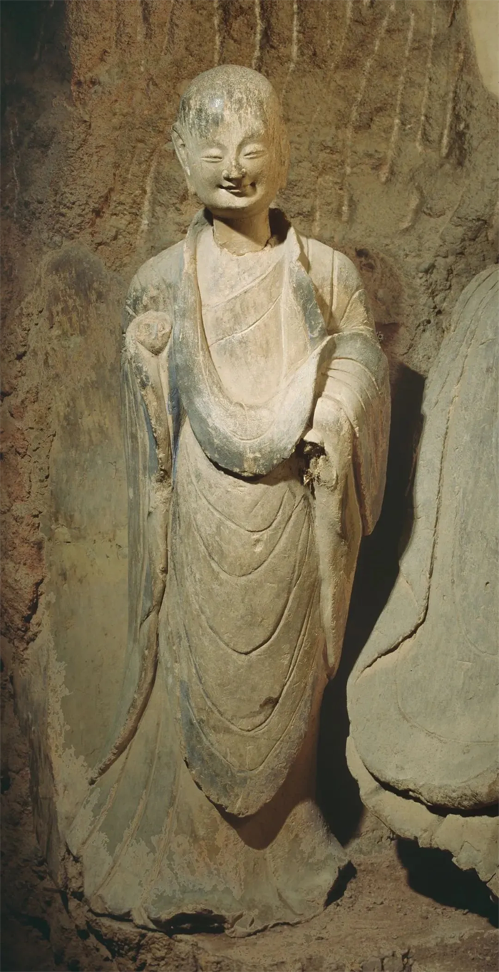 ▲133窟9号龛沙弥的微笑,北魏晚期。