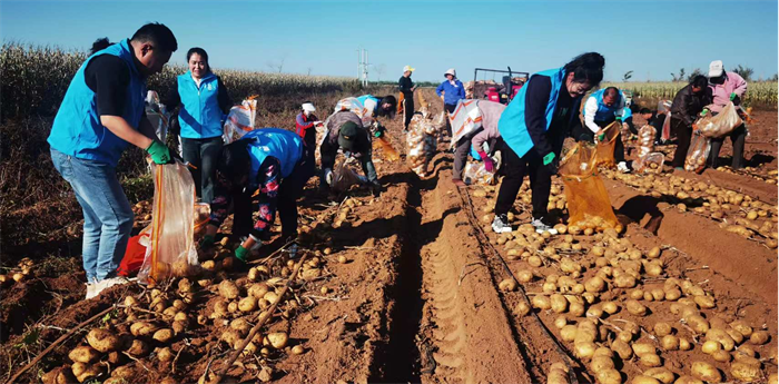 近期,察右中旗因频繁降水,严重影响了农作物抢收工作。为积极响应旗委政府关于帮助农民做好农作物抢收工作的号召,抢抓天时将农户损失降到最低,9月23日,察右中旗总工会干部职工深入包联乡土城子乡正南房村、元山子村开展“保抢收 稳增收 促销售”为农助农实践活动,帮助农户抢收土豆。
