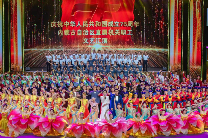 为迎庆中华人民共和国成立75周年,9月23日至24日,自治区党委直属机关工委、内蒙古广播电视台在自治区文化馆联合举办了庆祝中华人民共和国成立75周年自治区直属机关职工文艺汇演。自治区党委直属机关工委、内蒙古广播电视台、各参演单位有关领导出席活动。自治区直属机关各部、委、办、厅、局机关党委专职副书记、工会主席和参演单位一线干部职工代表观看演出。