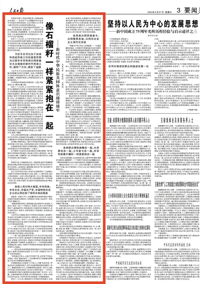 各族群众唱歌跳舞在一起,生活居住在一起,工作奋斗在一起,中华民族像石榴籽一样紧紧抱在一起