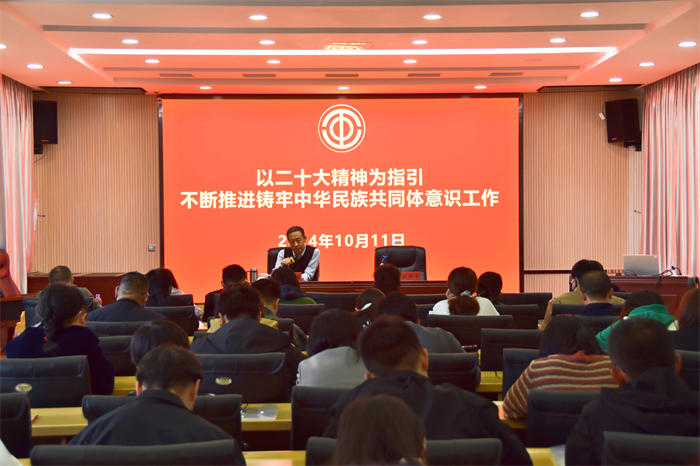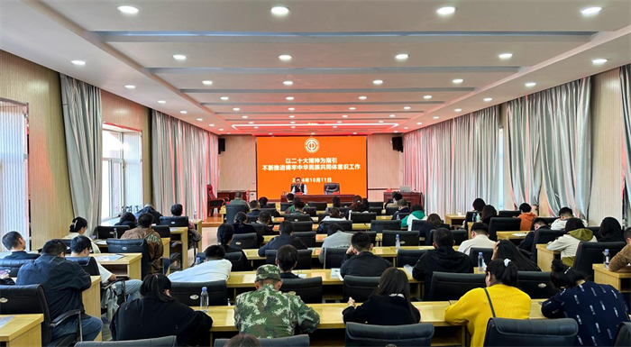 县人大常委会党组副书记、副主任,县总工会主席徐贵峰以《以二十大精神为指引,不断推进铸牢中华民族共同体意识工作》为题,用通俗易懂的语言讲述党的百年光辉奋斗历程、党的二十大的重要历史意义以及铸牢中华民族共同体意识的丰富内涵、重大意义和实践途径,引导全体学员自觉把思想和行动统一到党的二十大精神上来,铸牢中华民族共同体意识,推动全县共同做好民族工作,不断开创民族团结进步事业的新局面。