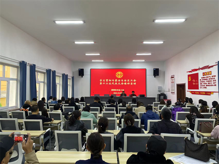 为深入学习贯彻内蒙古自治区工会第十二次代表大会精神,10月9日下午,满洲里市总工会召开自治区工会十二大精神宣讲会,全市基层工会组织80余人参会。