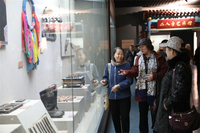 在讲解员带领下,老干部们参观了民俗文化展厅。敕勒川民间艺术丰富多样,大家近距离感受二人台、剪纸、面塑等传统民间艺术的魅力,深切感悟内蒙古各族人民在党的领导下守望相助、团结奋进、创造美好生活的精神追求。