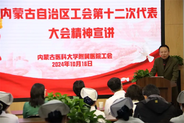 为全面深入学习领会内蒙古自治区工会十二大精神,扎实推进学习宣传工作,10月17日,内蒙古医科大学附属医院举办了自治区工会第十二次代表大会精神宣讲活动。各分工会主席、工会干部参加了本次宣讲。
