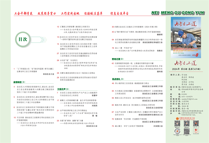 《内蒙古工运》2024年第8期封面、目录展示
