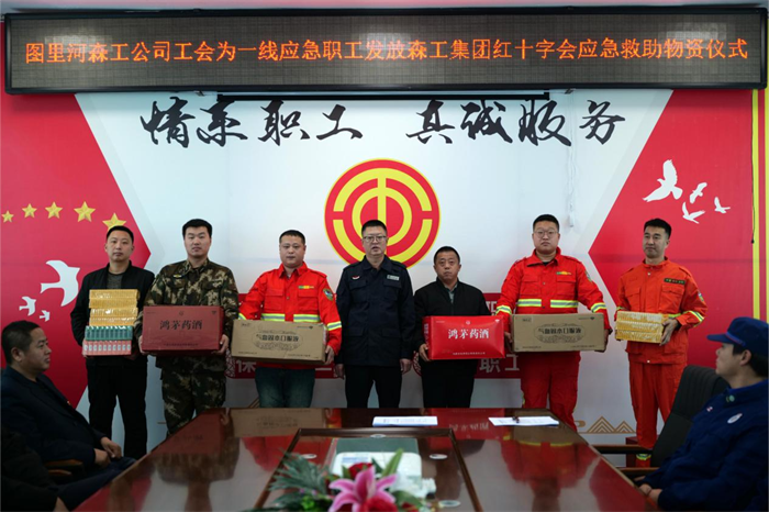 近日,图里河森工公司工会举行应急救助物资发放仪式,为应急事务中心等13个基层单位发放森工集团红十字会捐赠的药品物资。