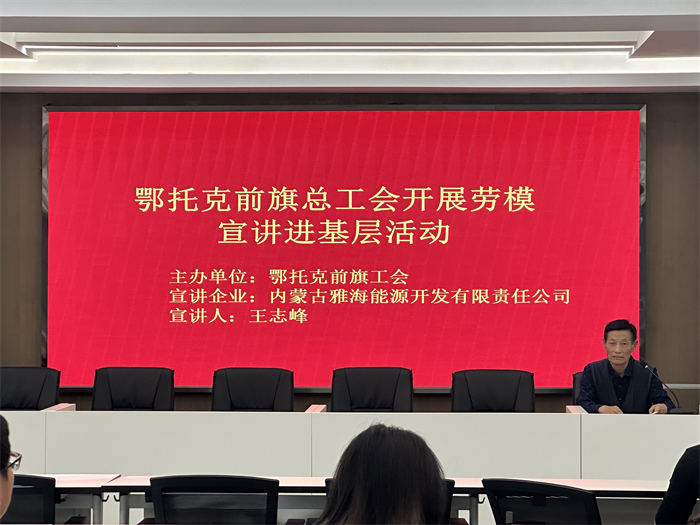 为大力弘扬劳模精神、劳动精神、工匠精神,充分发挥劳模先进的示范带头作用,近日,鄂托克前旗总工会邀请自治区级先进工作者王志峰深入内蒙古雅海能源开发有限责任公司开展劳模宣讲活动。