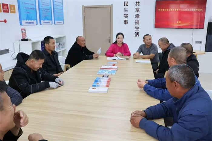 为深入学习宣传贯彻自治区工会十二大精神,10月30日,自治区工会第十二次代表大会代表、旗总工会党组书记、常务副主席金花,走进户外劳动者服务站开展自治区工会十二大精神宣讲。