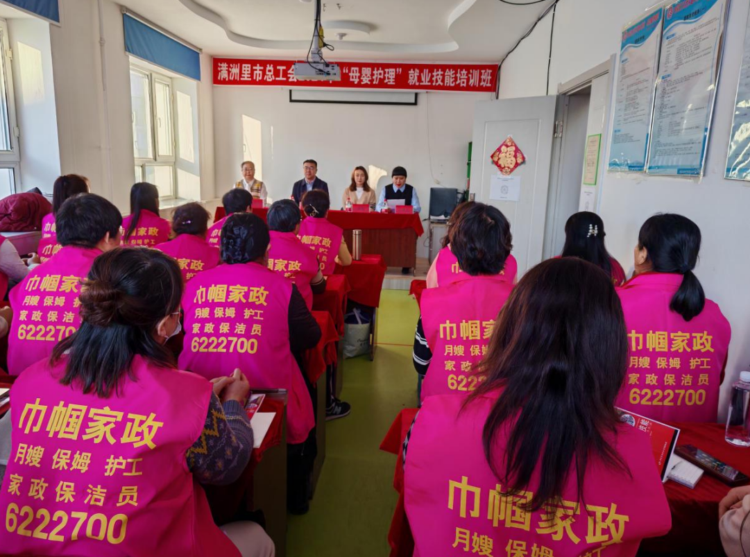 近日,满洲里市总工会2024年第一期母婴护理培训开班仪式在满洲里市鹏诚职业培训学校举行。来自全市的40名下岗失业、外来务工人员、农牧民工及困难职工家庭待业人员参加培训。