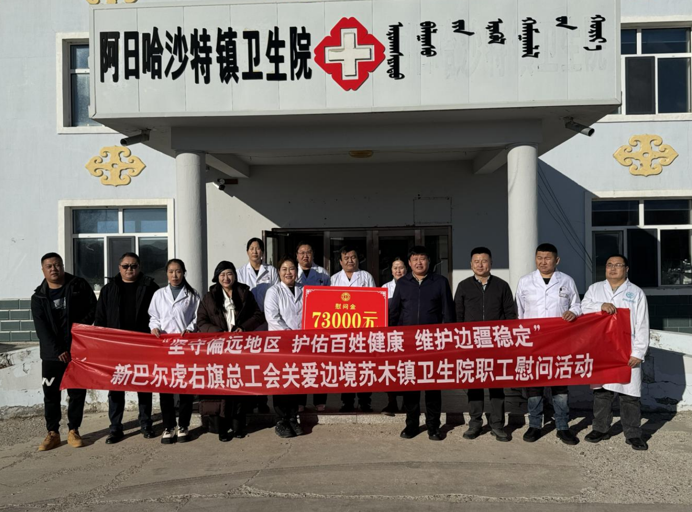 为突出工会组织对边境苏木镇卫生院职工的关心关爱,激励广大医务工作者“感党恩、听党话、跟党走”,近日,自治区教科文卫体工会、呼伦贝尔市总工会、新巴尔虎右旗总工会联合开展“坚守偏远地区 护佑百姓健康 维护边疆稳定”关爱边境苏木镇卫生院职工慰问活动。据统计,此次慰问行动累计为全旗73名苏木镇卫生院职工送去73000元的慰问金。