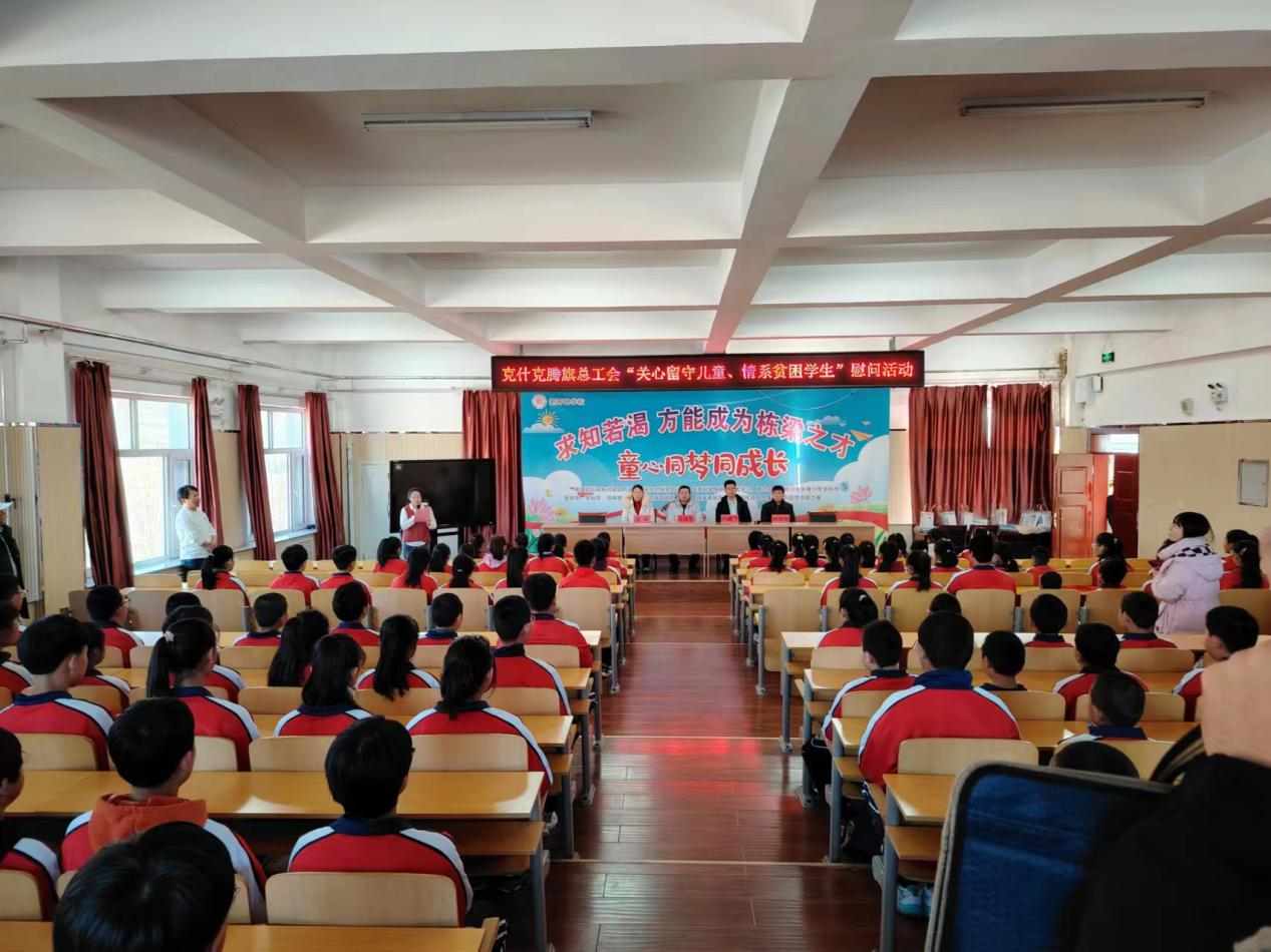 活动中,旗总工会向困难学生赠送保温杯、图书、笔袋等学习和生活用品,激励孩子们努力学习,争做新时代好少年。