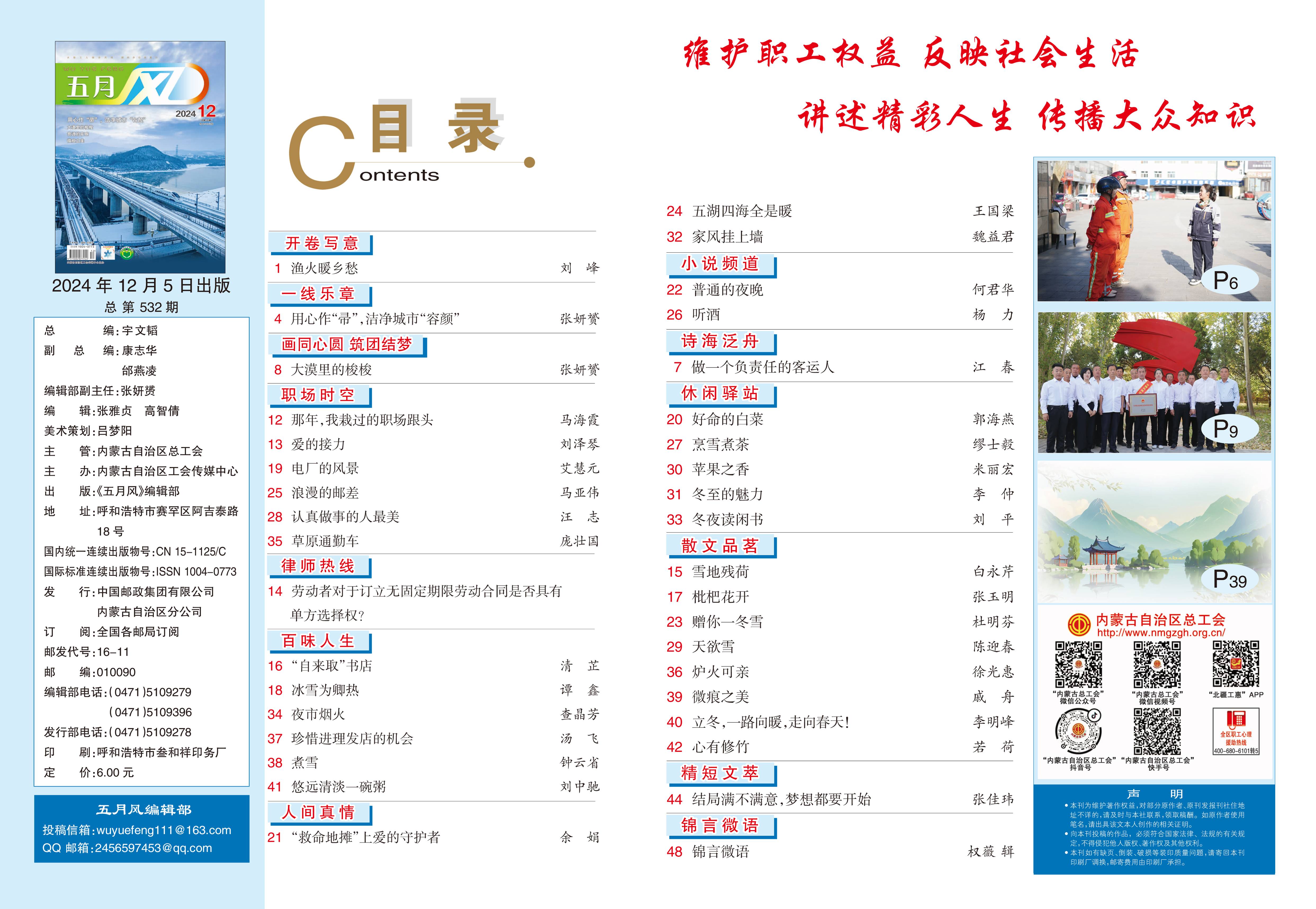 《五月风》2024年第12期封面及目录展示