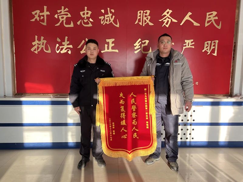 2023年12月22日,家住江苏省徐州市的赵先生将一面印有“人民警察为人民,失而复得暖人心”的锦旗委托他人送至乌里雅斯太第一派出所辅警郑恒超手中,对民警快速帮助其找回遗失手机一事表示感谢。12月16日晚23时许,乌里雅斯太第一派出所接到报警称:“我手机遗失了,现在德顺源宾馆”,接警后民警迅速赶赴现场,在现场,赵先生非常焦急的向民警讲述事发经过:当日赵先生与朋友一起旅游到达东乌旗并入住德顺源宾馆,在将车辆停入地下车库的路上,赵先生在副驾驶下车时手机不慎从车内滑落至地上,等赵先生发现手机遗失时,手机已经被其后面的一辆汽车的车主捡走。赵先生称其与朋友只是旅游路过东乌旗,明天还要继续赶路,现在手机遗失,手机上面还有很多公司重要的数据,要是找不到自己必须返回,旅行也就结束了。出警辅警郑恒超听完赵先生的经历,迅速开始帮助赵先生寻找遗失手机。但是因为当时天色已晚,旅店的监控无法正常拍摄到捡走手机车辆的车牌信息,辅警郑恒超立即将手机遗失时间与现实时间核对并回到所内调取道路监控查找车辆,在经过两个小时的监控调取后,辅警郑恒超终于将捡走手机的车辆信息确定,但当时已经是凌晨2点,拨打车主电话车主也一直没有接听,辅警郑恒超再次通过大数据研判发现车主现住小区,在将情况汇报值班领导后,辅警郑恒超来到车主现住小区找到捡走手机的群众,群众称其看见该手机遗失在道路上,手机也关机打不开就先行将手机拿走等待机主寻回,后群众将手机交给出警人员。民警将手机交给赵先生时,赵先生激动的称:“谢谢人民警察,是你们挽回了我的损失。”